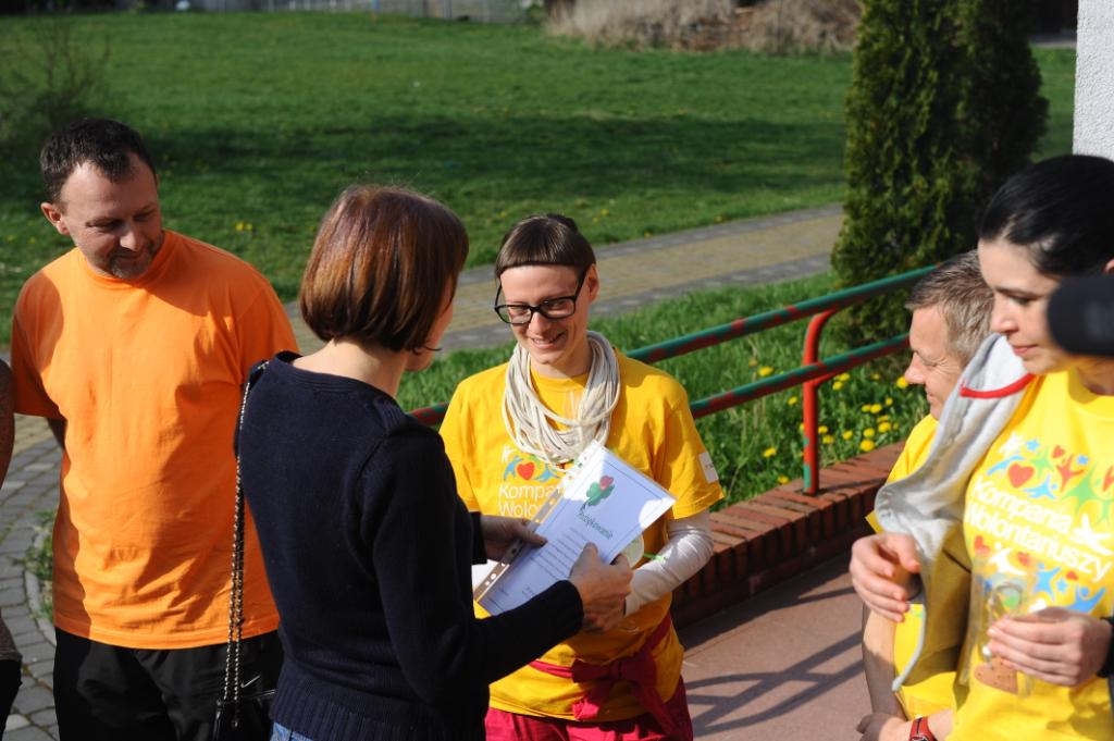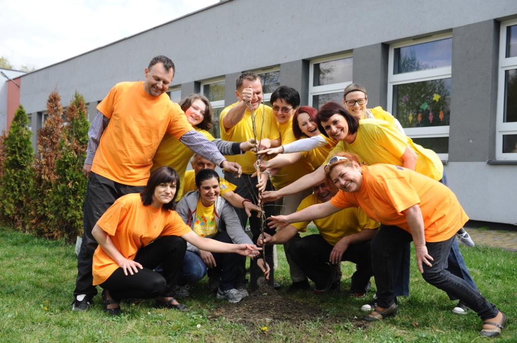 Grupa OPP nr 10051, którą założyło Stowarzyszenie na rzecz osób niepełnosprawnych „W stronę słońca”, gościła u siebie w dniu 12 kwietnia 2014 r. wolontariuszy z Kompanii Piwowarskiej SA z Poznania oraz nauczycieli i rodziców dzieci z Zespołu Szkół Specjalnych nr 8 w Tychach. Wspólnie wyremontowali gabinet do terapii biofeedback. Zakup aparatu do biofeedbacku sfinansowała Kompania Piwowarska SA. Koszt materiałów do remontu pokryło Stowarzyszenie z subkonta 1%. Dzięki ofiarności i zaangażowaniu zebranych osób dzieci mogą korzystać z profesjonalnej terapii i cieszyć się postępami w leczeniu. Jabłonka na szkolnym placyku, posadzona wraz z wolontariuszami, upamiętnia to sympatyczne wydarzenie. Dziękujemy!