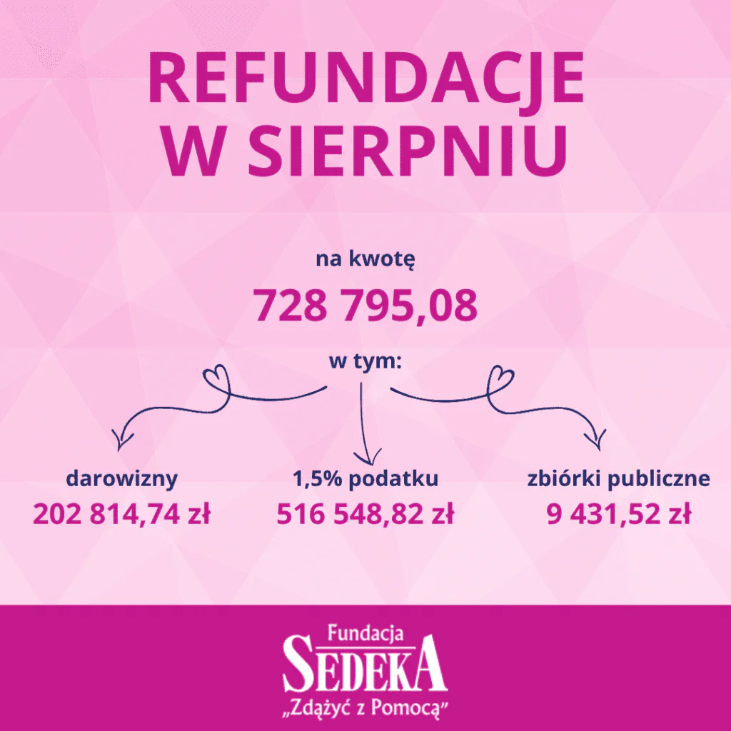 Czas aby podsumować sierpniowe refundacje. W ubiegłym miesiącu zrefundowaliśmy wydatki na rzecz Podopiecznych na łączną kwotę 728 795,08 zł.