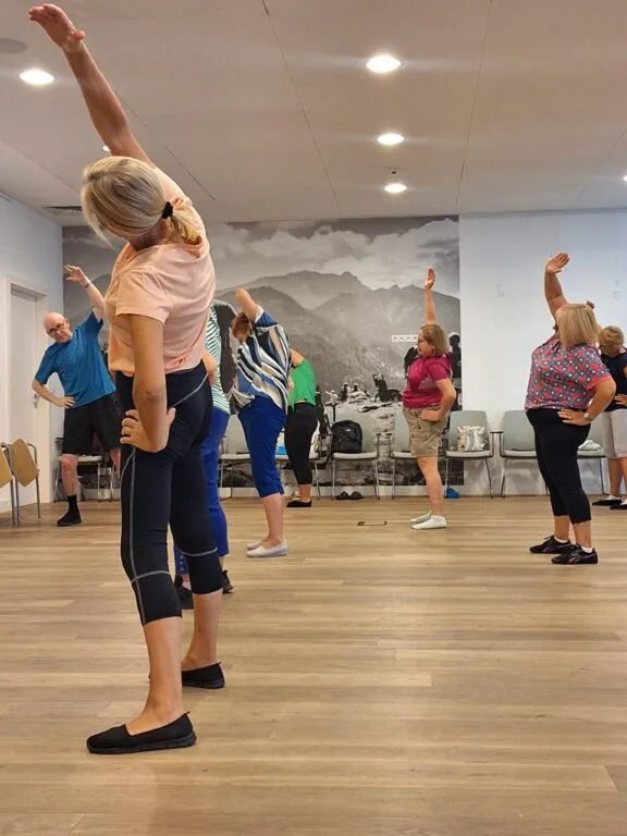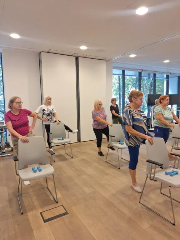 –Zajęcia ruchowe, takie jak fitness, nordic walking oraz taniec w kręgu, które dbały o sprawność, koordynację i dobrą formę naszych Seniorów. Regularna aktywność to najlepszy sposób na zachowanie zdrowia i energii na co dzień!