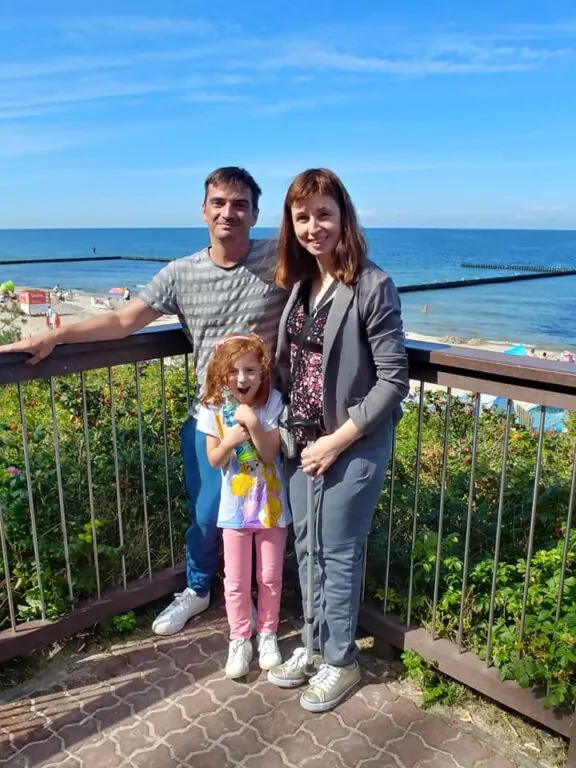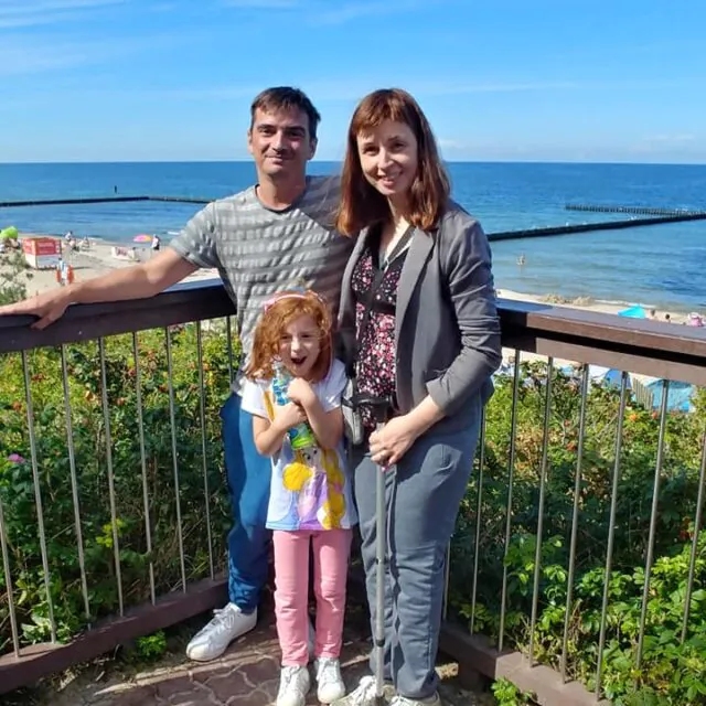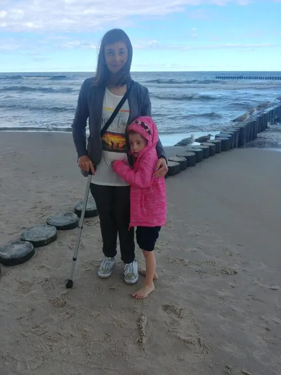My natomiast mamy stwierdzone okołoporodowe porażenie mózgowe. Poruszam się przy pomocy laski. Na co dzień bardzo przeszkadza mi w poruszaniu zwiększająca się spastyczność mięśni, bolesność lewego stawu skokowego. Mój mąż Grzegorz dzięki wcześniejszej regularnej rehabilitacji jest bardzo silny, bez niego nie dałabym rady opiekować się córką.
