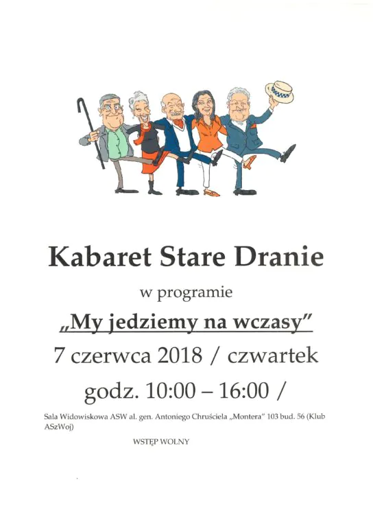 Potrzebne nam jest miejsce, gdzie moglibyśmy prowadzić próby kabaretu i przygotować scenografię, stroje, rekwizyty i wiele innych rzeczy, których sami nie jesteśmy w stanie sfinansować. Bardzo chcielibyśmy też nagrać nasze występy w profesjonalny sposób, by te „wygłupy” wniosły trochę uśmiechu w życie Seniorów, którzy nie mogą do nas dotrzeć osobiście.