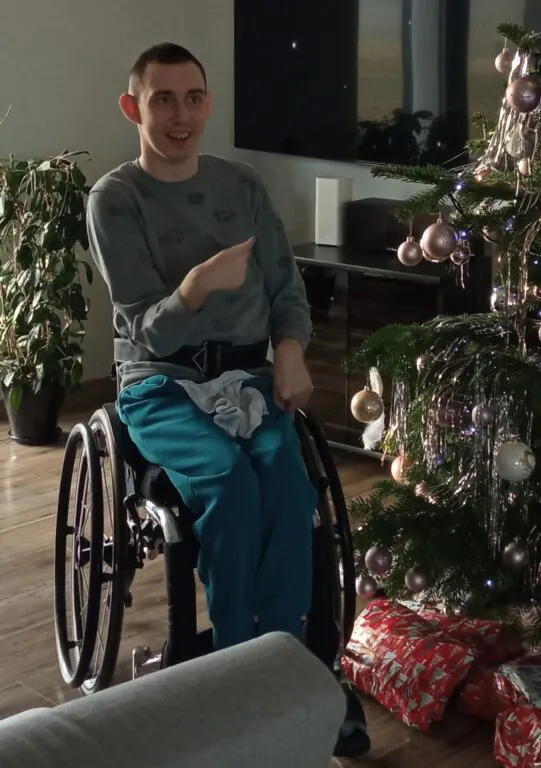 Mam na imię Tomek. Urodziłem się 2 lipca 2000 roku i szybko okazało się, że choruję na mózgowe porażenie dziecięce czterokończynowe. Przeszedłem kilka operacji, m.in. biodra oraz wydłużenia ścięgien, po których byłem poddany długotrwałej rehabilitacji.