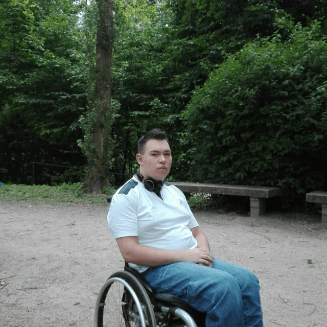 Mam na imię Łukasz. Choruję na Dziecięce Porażenie Mózgowe.