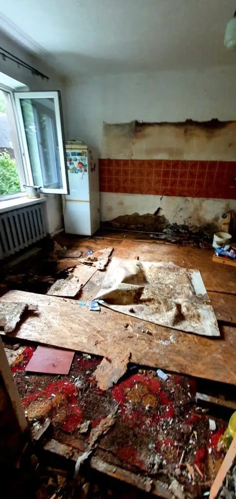 Niestety to nie koniec trudności, z którymi zmaga się Darek. W domu, w którym mieszka wraz z mamą, zapadła się podłoga, pod którą znajdowały się jedynie legary i goła ziemia. W związku z tym, do środka wdarła się niesamowita wilgoć, przez którą stare meble zaczęły dosłownie rozpadać się na stojąco. Już sama wilgoć ma bardzo niekorzystny wpływ na zdrowie, nie wspominając o tym, jak niebezpieczne są ciągle powiększające się dziury w podłodze dla dwóch osób z bardzo ograniczoną zdolnością ruchową.